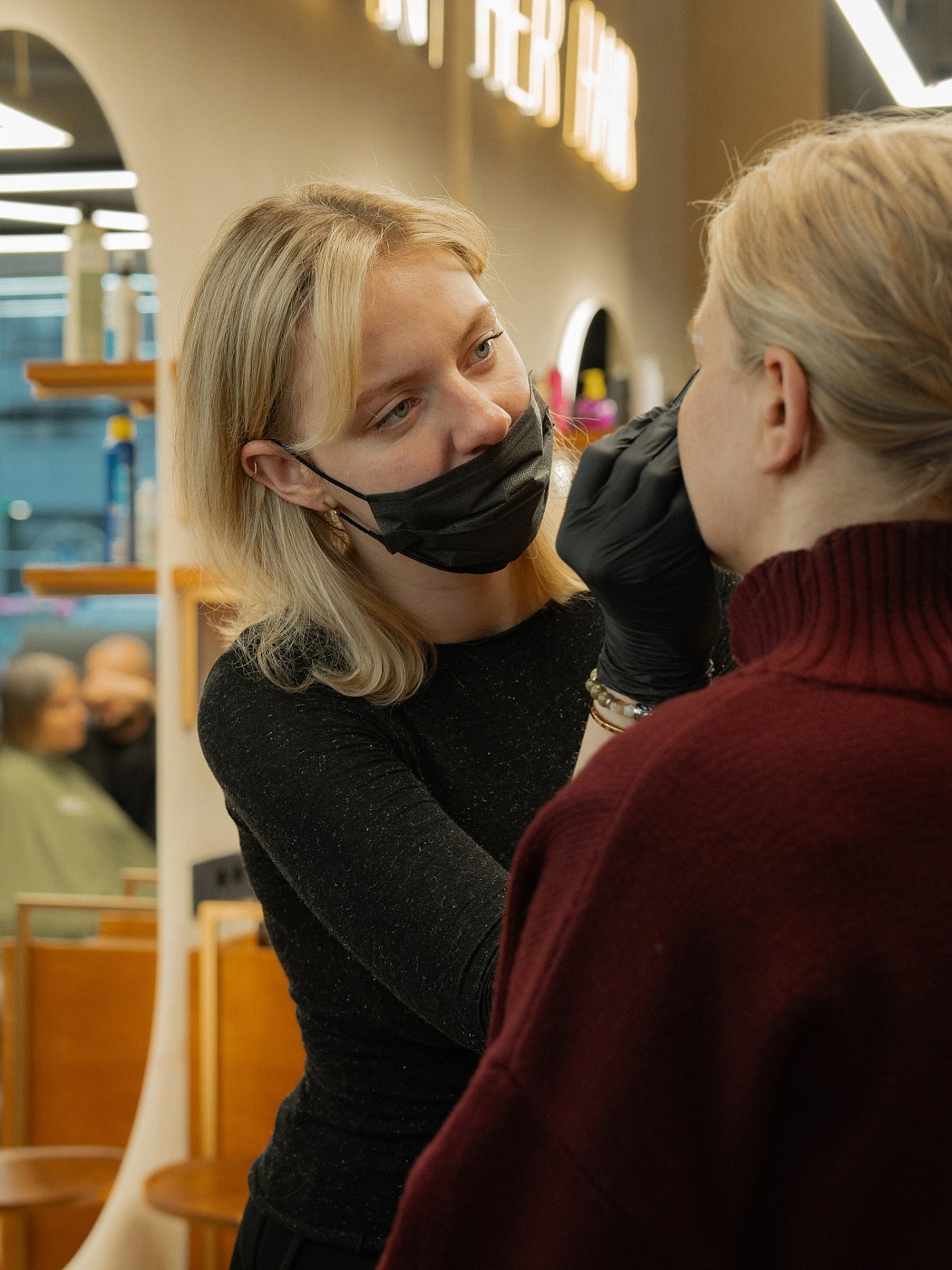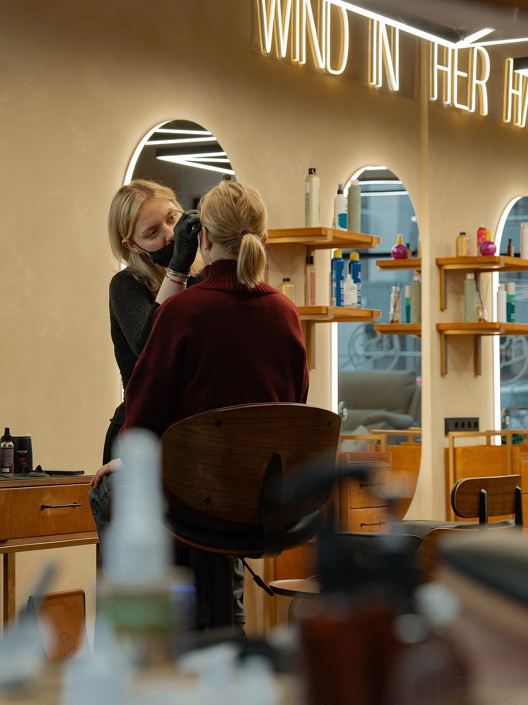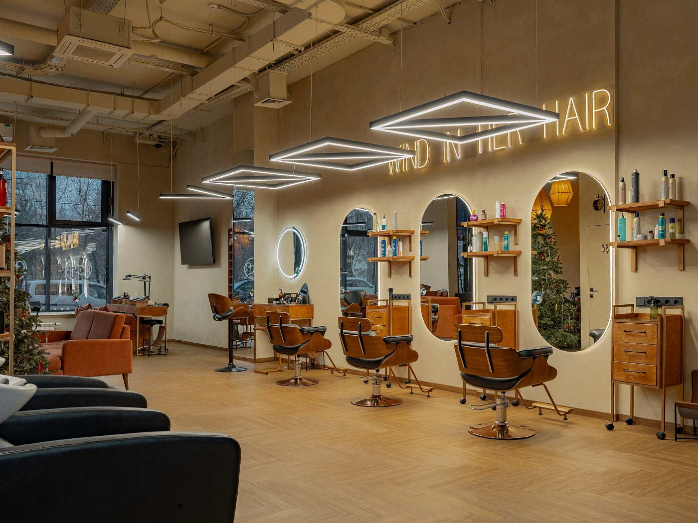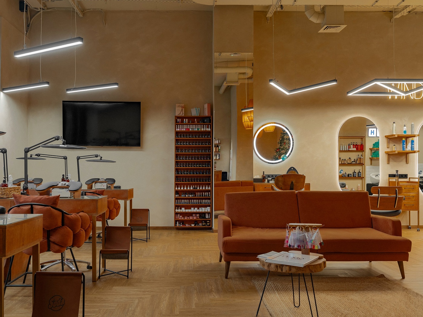 Лаконичный дизайн-проект нашего салона создает атмосферу уюта и комфорта, а зона отдыха позволит забыть о суете и насладиться моментом. Наши мастера – это настоящие художники, которые обладают тонким чувством стиля и непрестанно развиваются в своей области. Они помогут Вам стать лучшей версией себя, воплотив самые смелые идеи и пожелания.